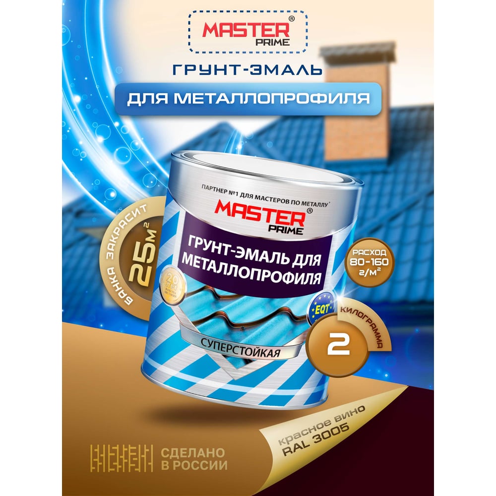 Грунт-эмаль для металлопрофиля MASTER PRIME RAL 3005 красное вино, 2 кг 4300006941