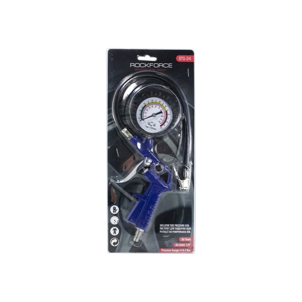 Пистолет для подкачки шин Rockforce с манометром и шлангом RF-STG-24(50381)