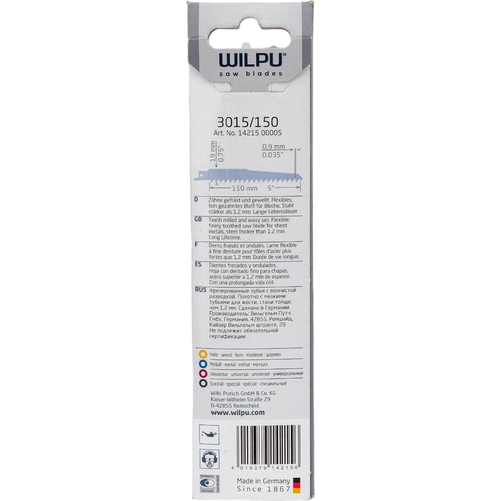 Полотно по металлу 3015/150 Bi-metall (5 шт; 150х19х0.9 мм; 130 мм; 24 TPI) WILPU 1421500005