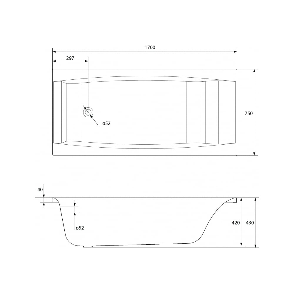 | Диаметр выпуска (отверстия для слива) | 52 мм |