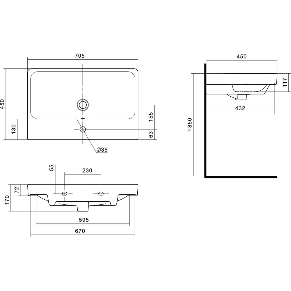 | Ширина раковины | 705 мм |