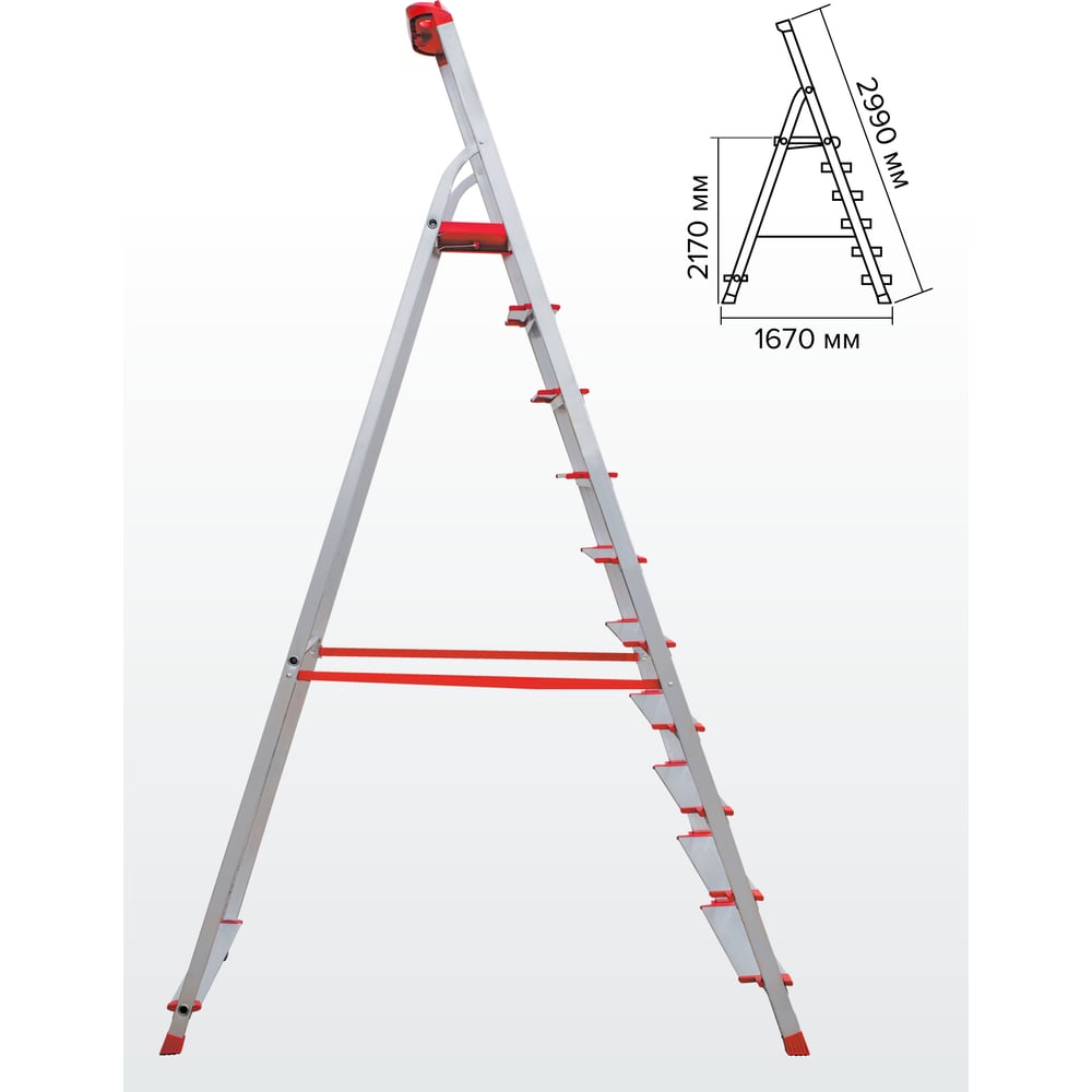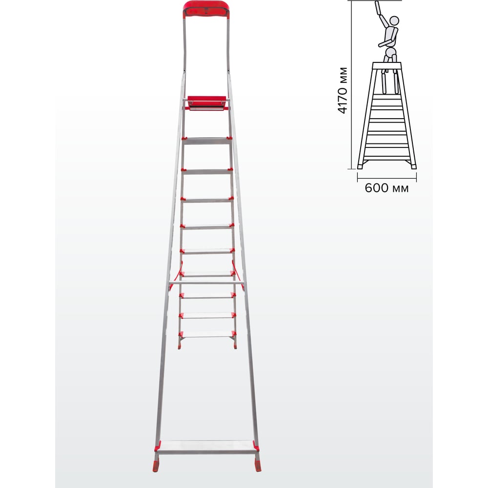 Профессиональная стремянка Новая Высота NV3118, 1x10 ступеней 130 мм, органайзер, Max нагр. 180 кг, 2К башмаки, 3118110