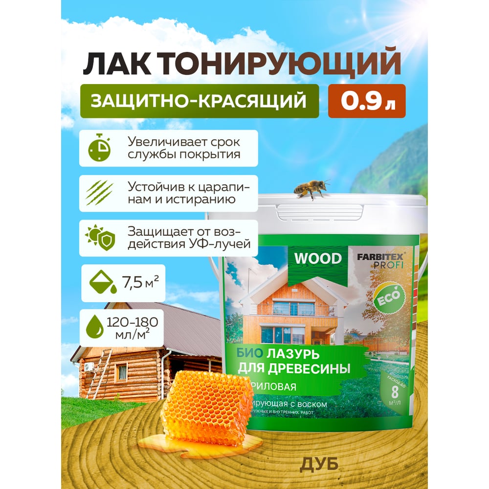 Акриловая лазурь для дерева Farbitex (защитно-красящая; дуб; 0.9 л) 4300007735
