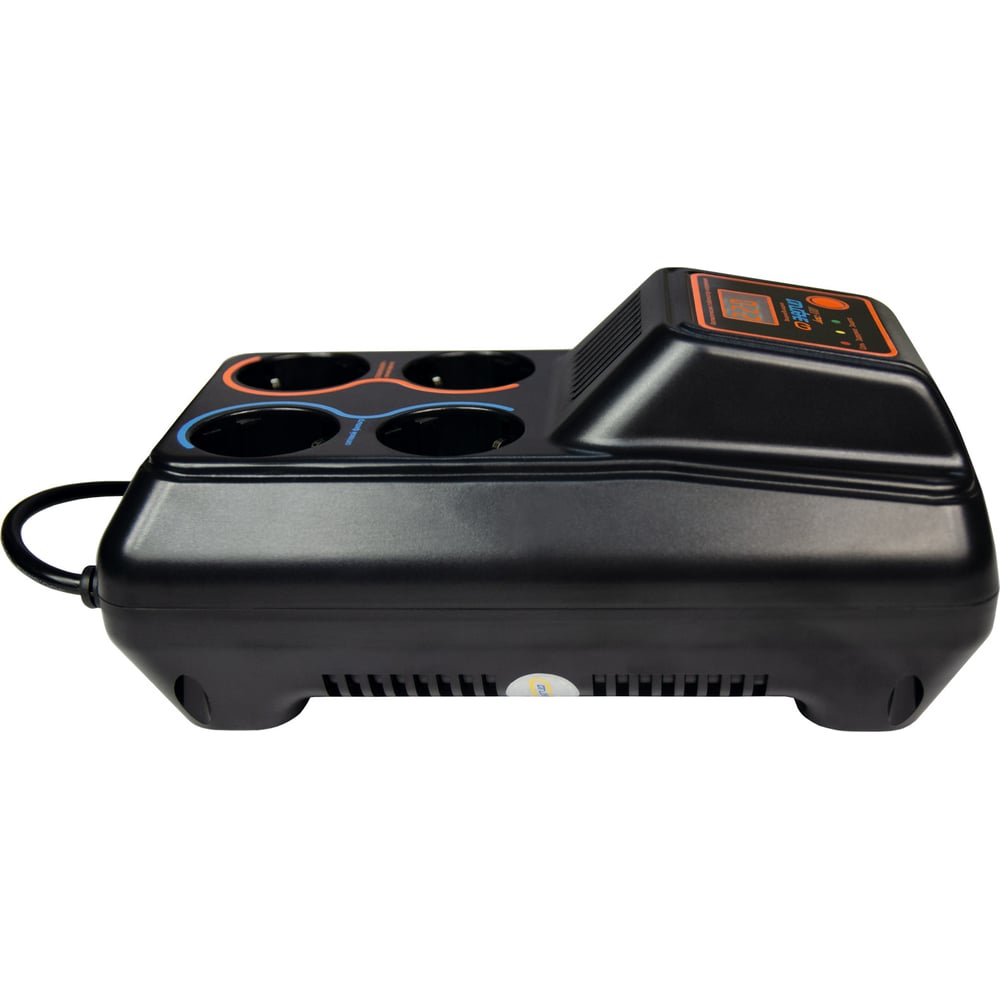 Габариты без упаковки 240х130х110 мм Тип релейный Класс товара Бытовой Вес нетто 2.05 кг Способ установки настенный/напольный Модельный ряд Люкс Класс защиты IP 20 (негерметизирован) Min входное напряжение 130 В Наличие сетевой вилки да Диапазон рабочих температур от -5 до +40 °С Количество фаз 1 Мощность 0.8 кВт Розетка на корпусе да Работа при минусовой температуре нет Частота питающей сети 50 Гц КПД 98 % Относительная влажность 85 % Max мощность 1 кВ*А Max входное напряжение 280 В Погрешность 10 % Входное напряжение 130-280 В Охлаждение естественное Форма выходного сигнала чистая синусоида Индикация цифровая Выходное напряжение 220 В Время регулирования 1 с Режим байпас нет Коэффициент мощности 0.8 Количество розеток 4 Задержка при включении 6 с