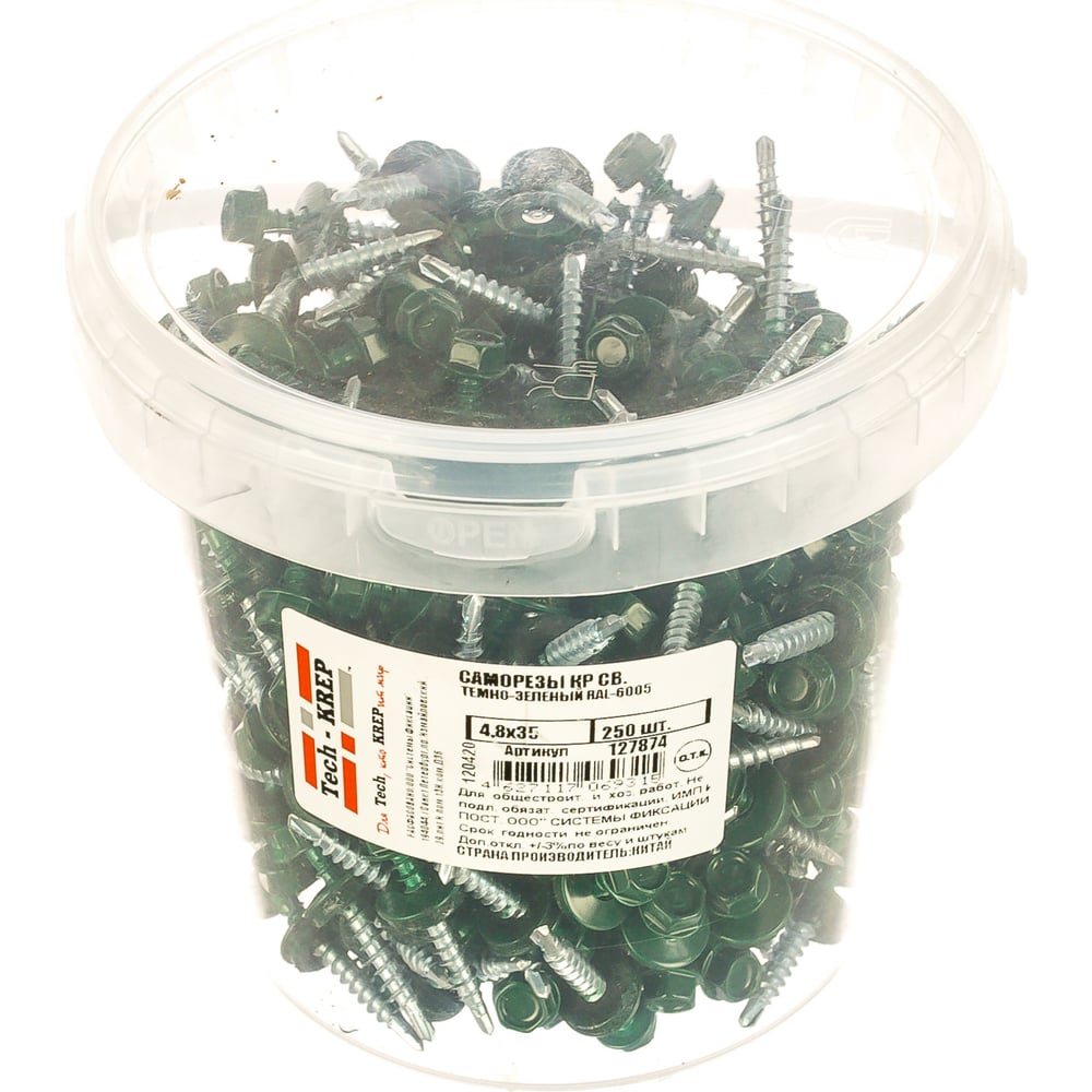 Кровельный саморез Tech-Krep КР сверло 4,8х35 RAL-6005 тёмно-зеленый 250 шт, ведро 127874