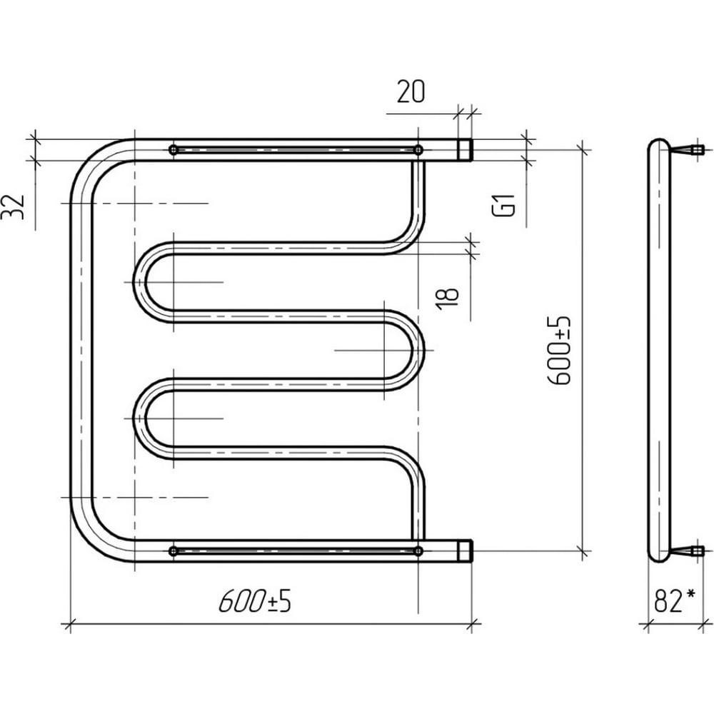 Водяной полотенцесушитель ТЕРА Фокстрот 600х600 наружная резьба 1 ПСВ-02-10