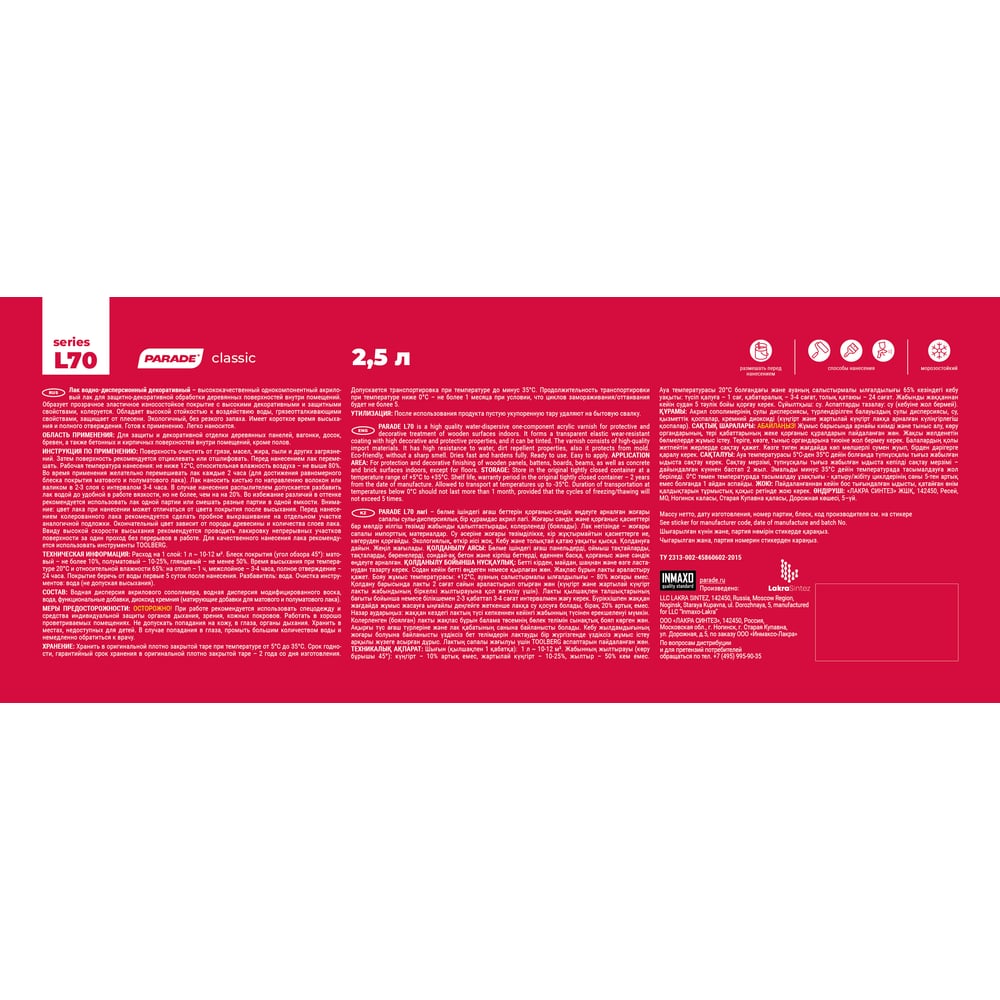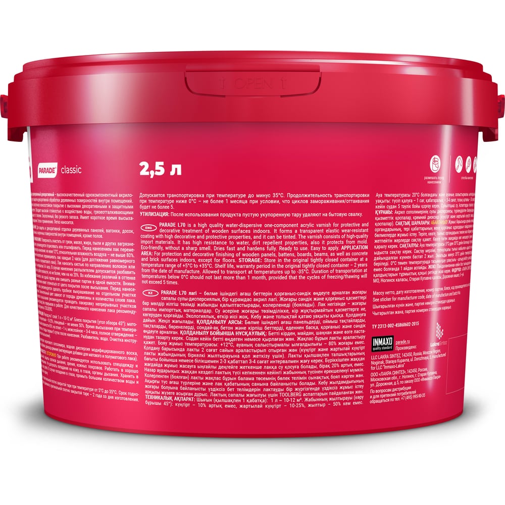 Лак акриловый матовый PARADE L70 Деревянный интерьер 2,5 л Россия Лк-00010338