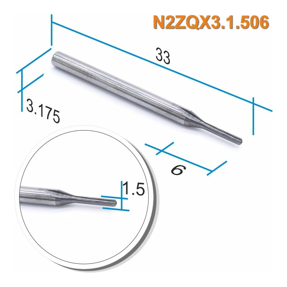 | Диаметр хвостовика | 3.175 мм |