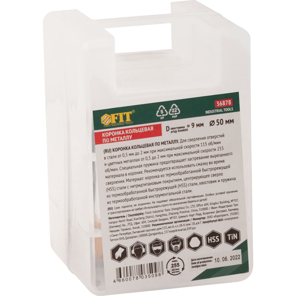 Коронка кольцевая по металлу 50 мм, HSS сталь, титановое покрытие FIT 36878