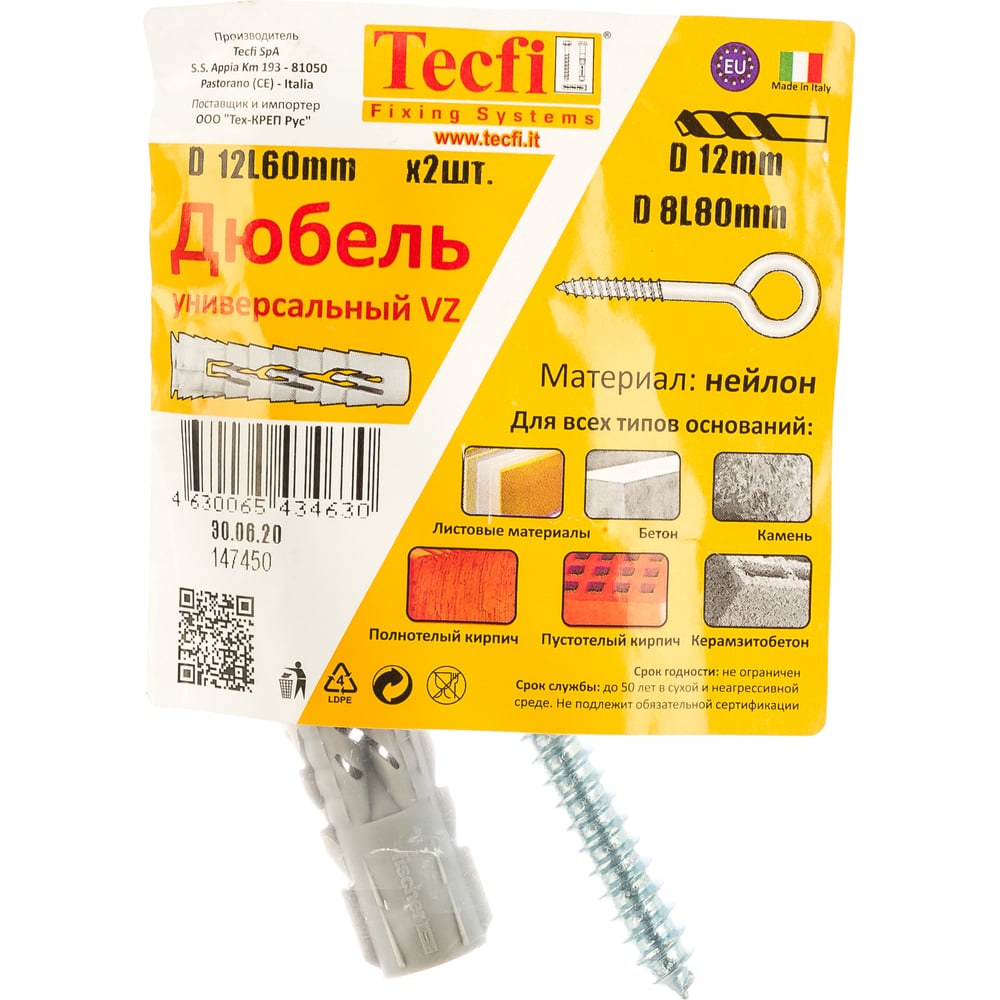 Универсальный дюбель Tecfi VZ нейлон 12x60 с шурупом-кольцом 2 шт - пакет 147450