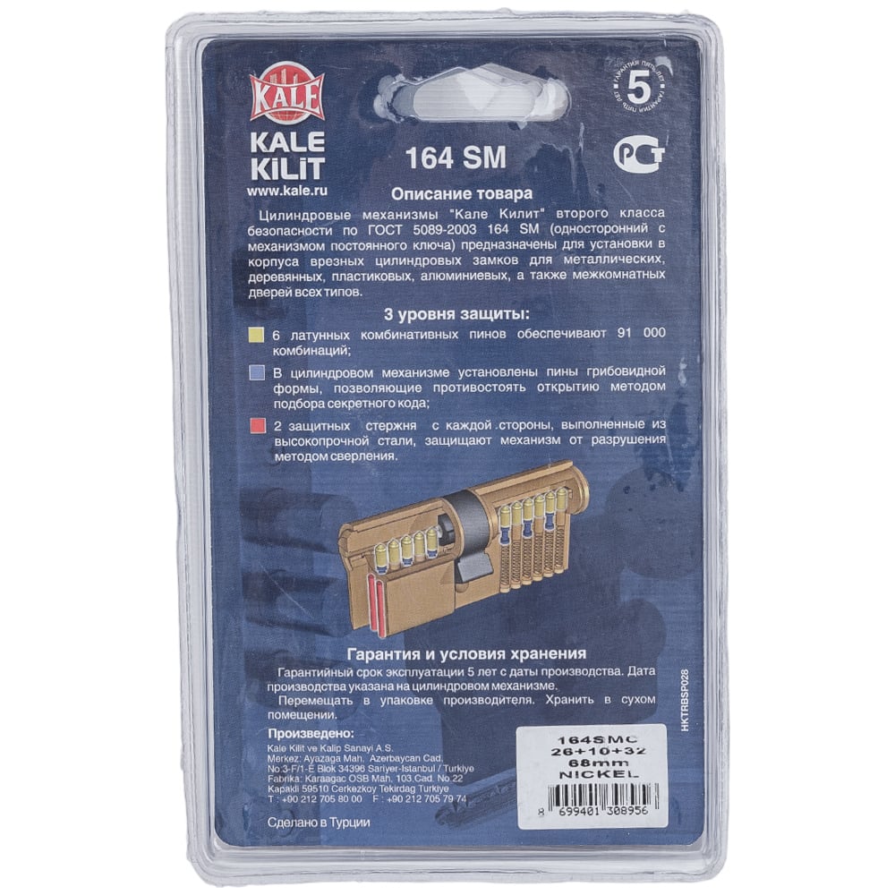 Цилиндровый механизм с вертушкой KALE KILIT 164 SM/68 (26+10+32) мм, блистер, никель, 5 кл. 25103