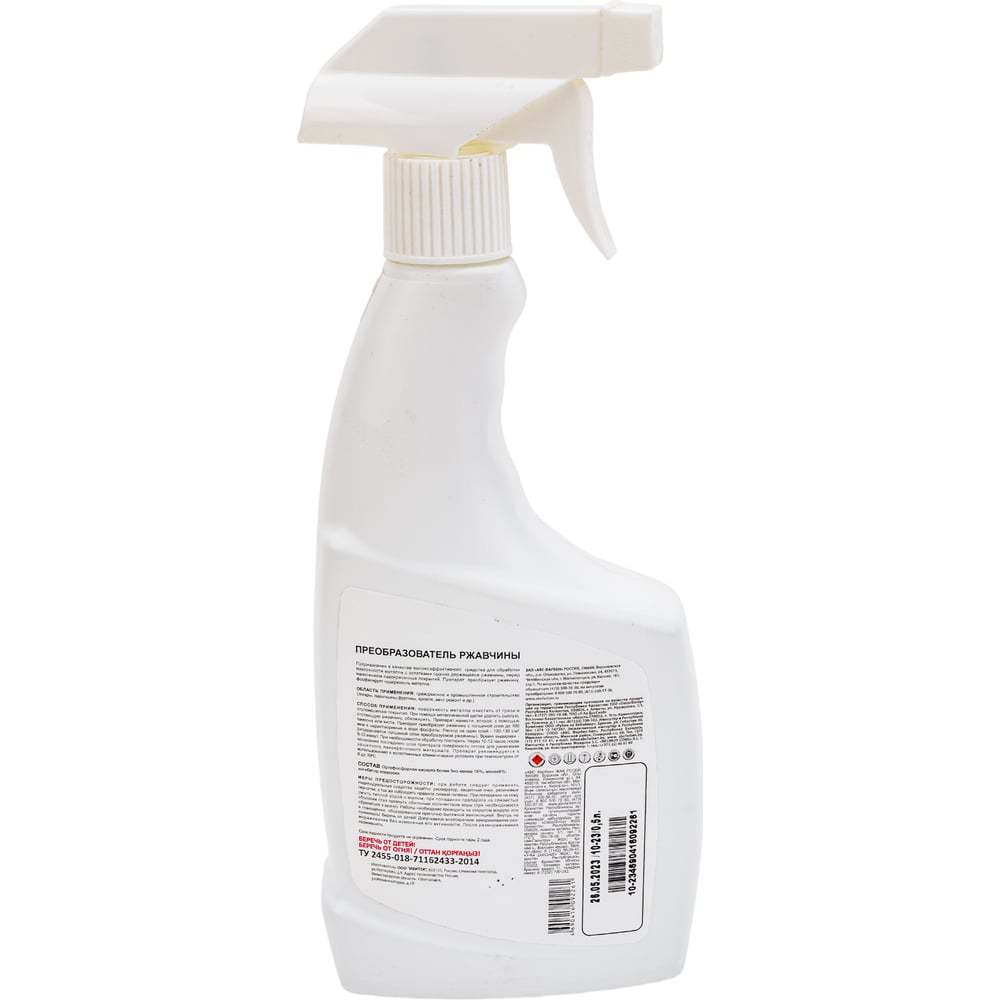 Объем 0.5 л Вид преобразователь ржавчины Вид тары бутыль с распылителем Марка нет Расход 100-130 г/м² ГОСТ/ТУ ТУ 2455-018-71162433-2014