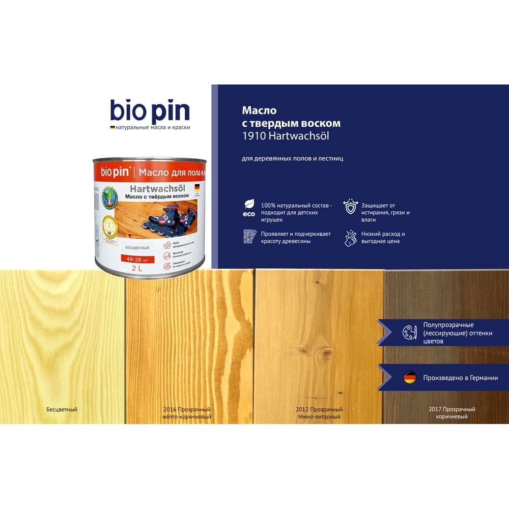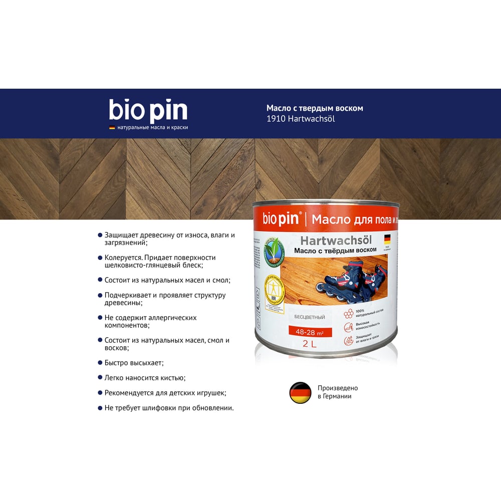 Масло для пола с твердым воском BIO PIN 1910 Hartwachsol бесцветное 2 л 19105