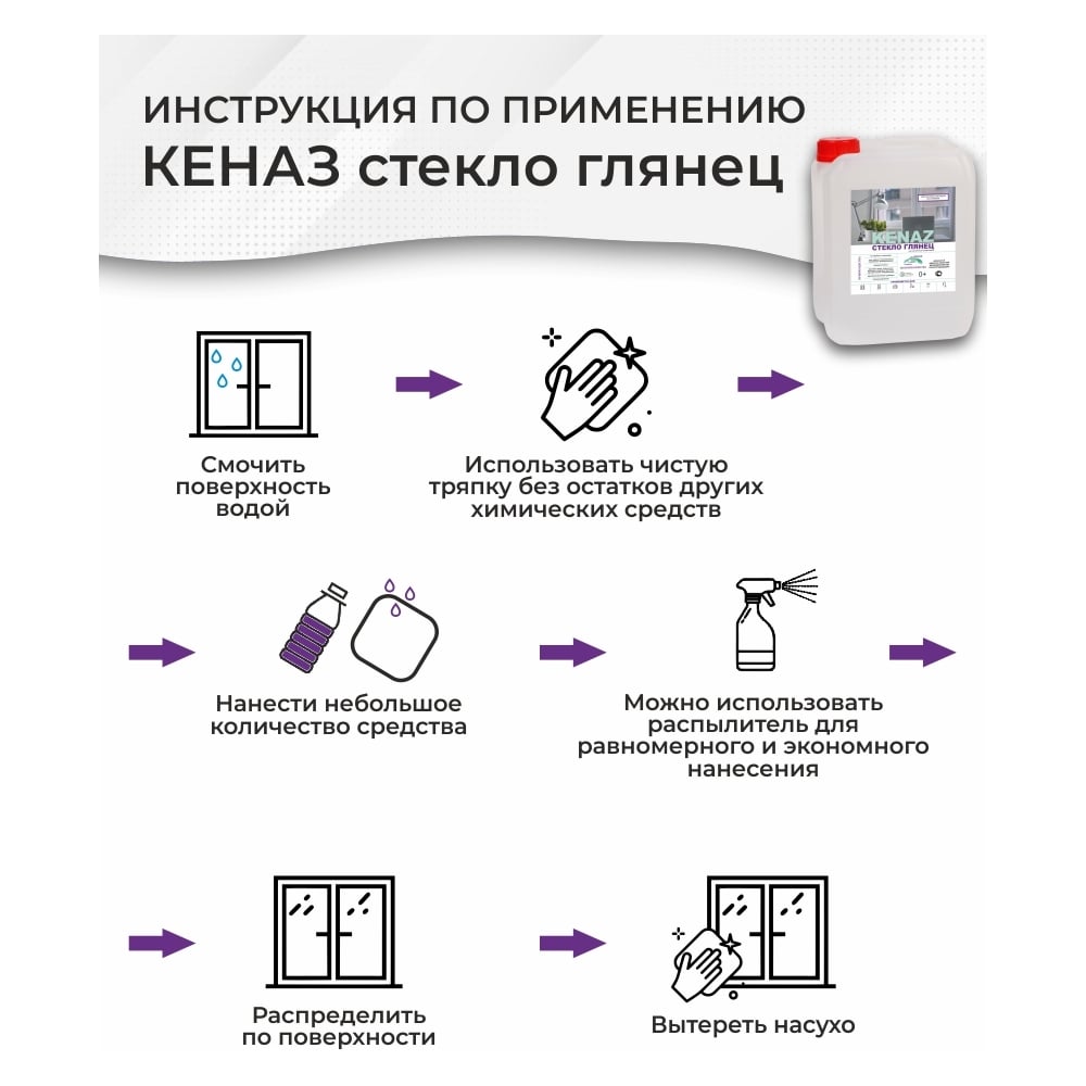 Чистящее средство КЕНАЗ стекло глянец, для окон, для мытья стекол и зеркал, без разводов и царапин, 5 л 809974