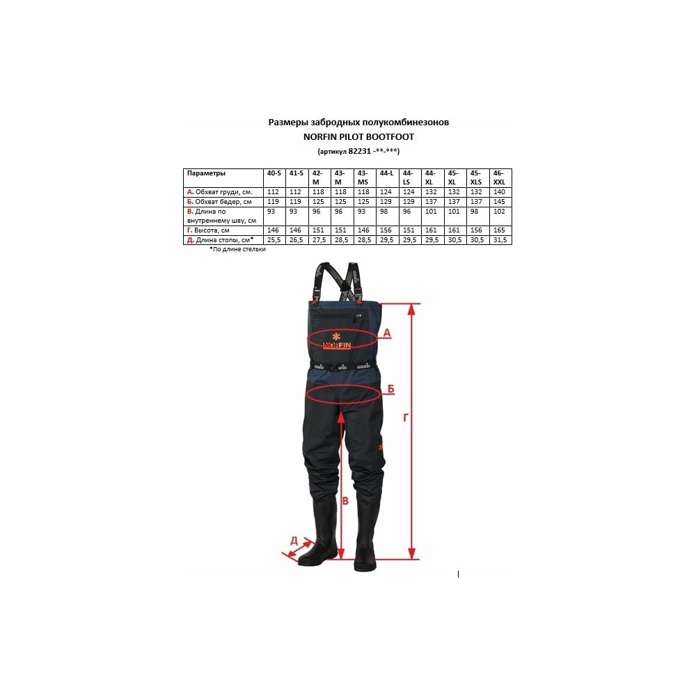 Забродный полукомбинезон с сапогами Norfin PILOT BOOTFOOT р.44/L 82231-44-L
