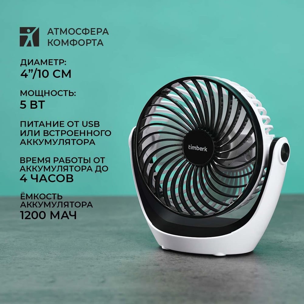 Настольный вентилятор с аккумулятором Timberk белый T-DF421