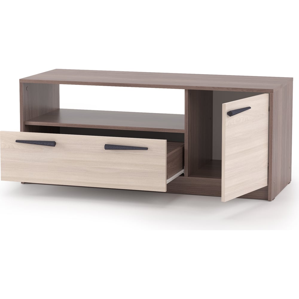 Габариты без упаковки 490x1187x450 мм Высота 490 мм Материал ЛДСП Покрытие матовое Ширина 1187 мм Цвет ясень шимо темный/ясень шимо светлый Вес нетто 32 кг Глубина 450 мм Тип замка нет Количество полок 1 шт Количество ящиков 2 шт Колесики нет
