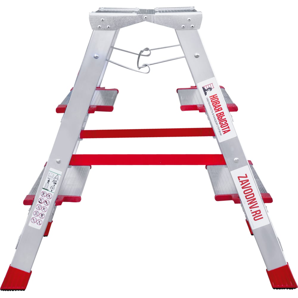 Профессиональная стремянка Новая Высота NV3127, 2x3 ступени 130 мм, площадка 350x260 мм, Max нагр. 225 кг, 2К башмаки, 3127203