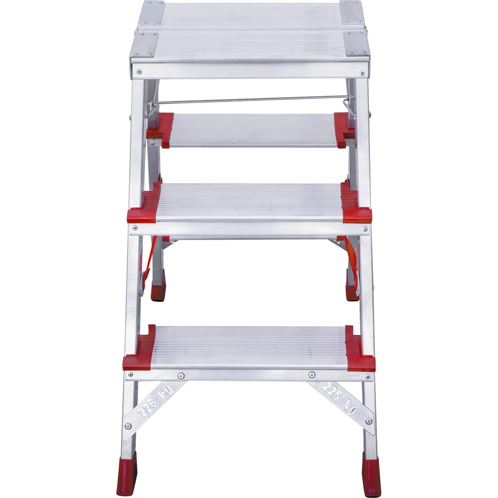 Габариты без упаковки 740х430х250 мм Материал алюминий Вид двусторонняя Тип стремянка Класс товара Профессиональный Вес нетто 4.9 кг Высота площадки 0.67 м Широкие ступени нет Лоток для принадлежностей нет Размер в сложенном состоянии 74х43х25 см Рабочая высота 2.67 м Max рабочая нагрузка 225 кг Общая длина 0.74 м Кол-во ступеней по одной стороне 3 шт Ширина ступеней 130 мм Ширина лестницы 430 мм min длина в сложенном состоянии 0.74 м Количество ступеней 2х3 шт Телескопическая/выдвижная нет Телескопическая нет С развальцованными ступенями нет Для разноуровневых поверхностей нет