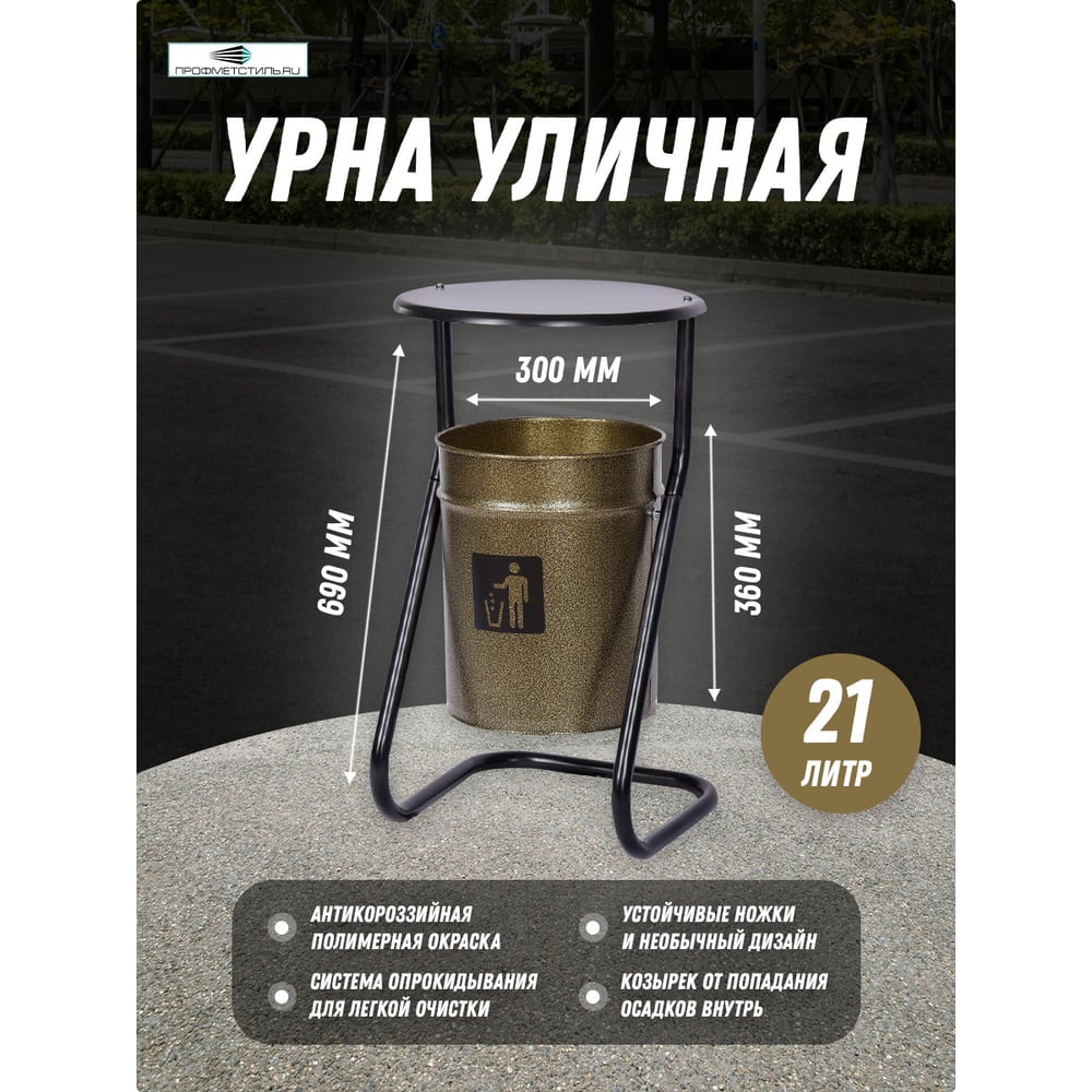 Уличная урна ПРОФМЕТСТИЛЬ металлическая, бронза, с крышкой 396