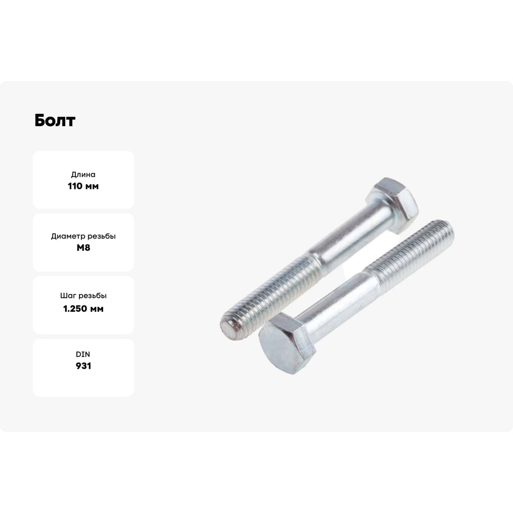 Оцинкованный болт ЦКИ DIN 931, М8x110 мм, 8.8, SW13, аналог ГОСТ 7798-70, 20 шт. 1802