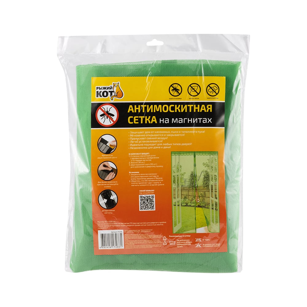 Антимоскитная сетка на магнитах Птички Рыжий кот Капутомоскито зеленая 311270