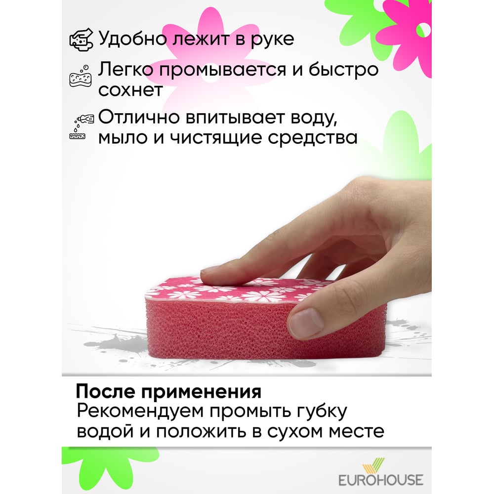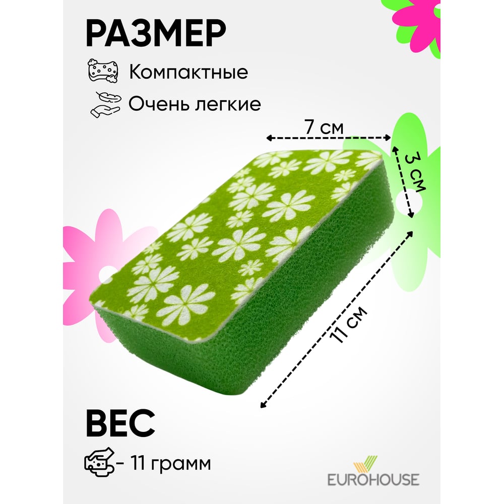 Двухслойная губка для посуды EUROHOUSE с принтом 14002