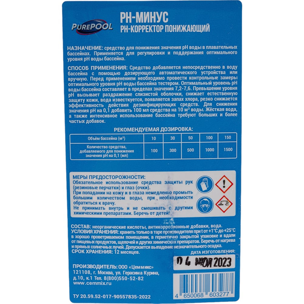 рН корректор CEMMIX PurePool понижающий 1 л 84735448