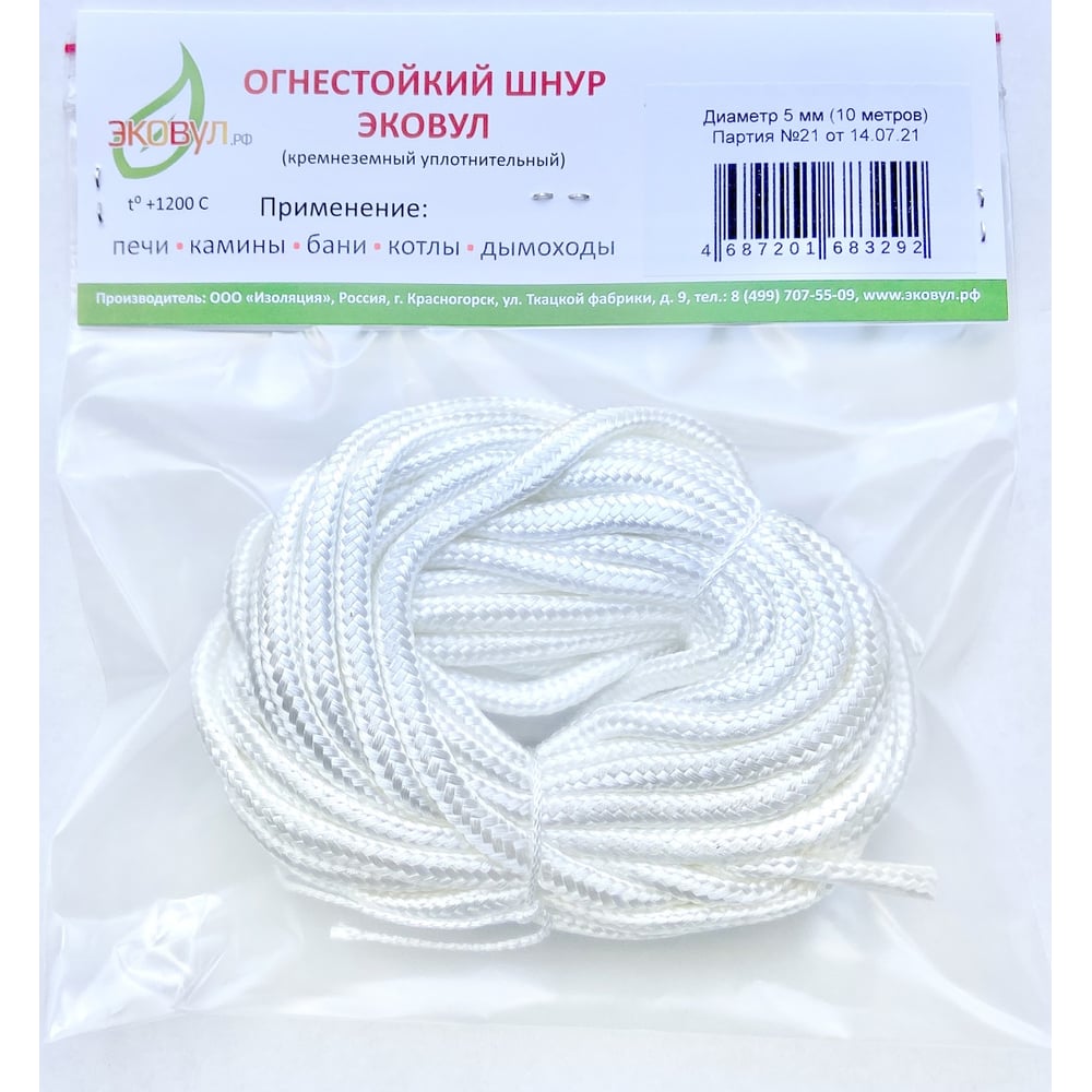 Кремнеземный шнур ЭКОВУЛ (EKOWOOL) ШКНН-1 10019