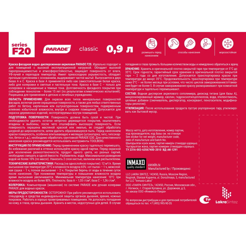 | Тип | акриловая (водно-дисперсионная) |