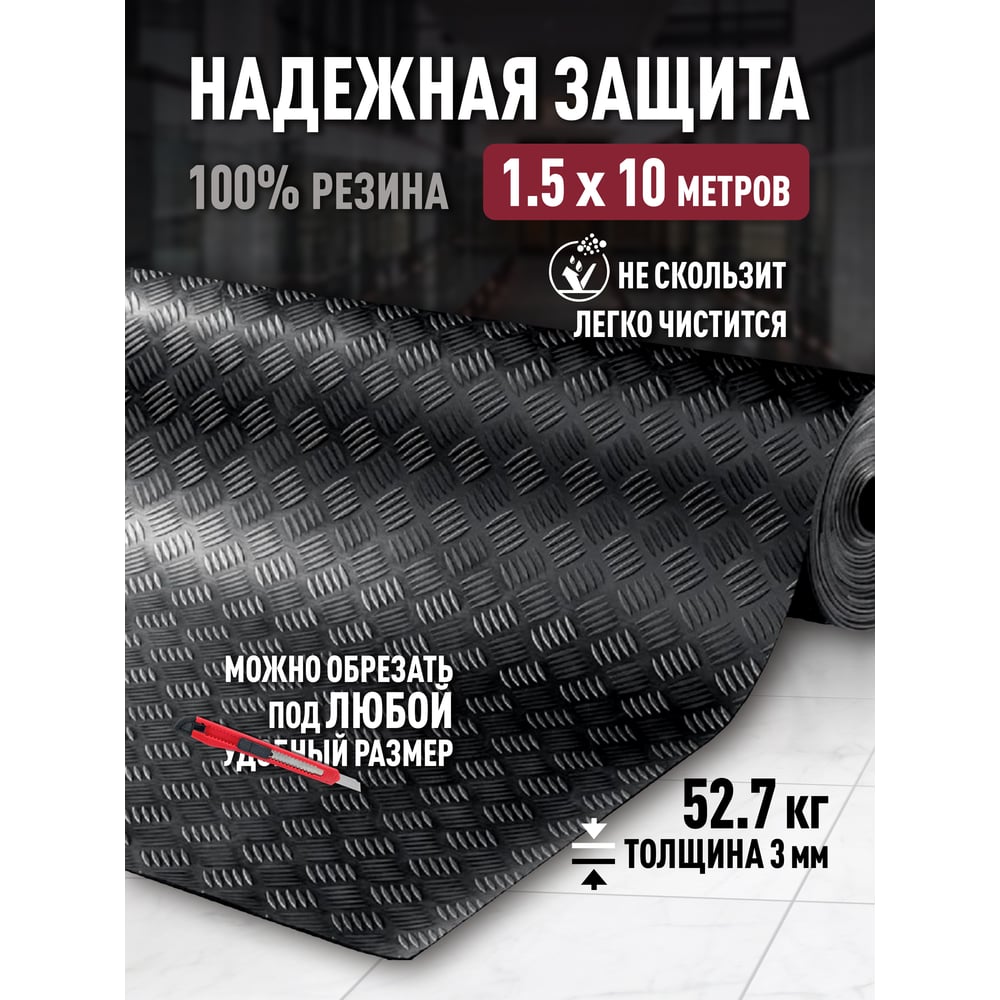 Резиновое рулонное покрытие ComeForte Шашки 1,5х10 м Checker Rubber СС002787