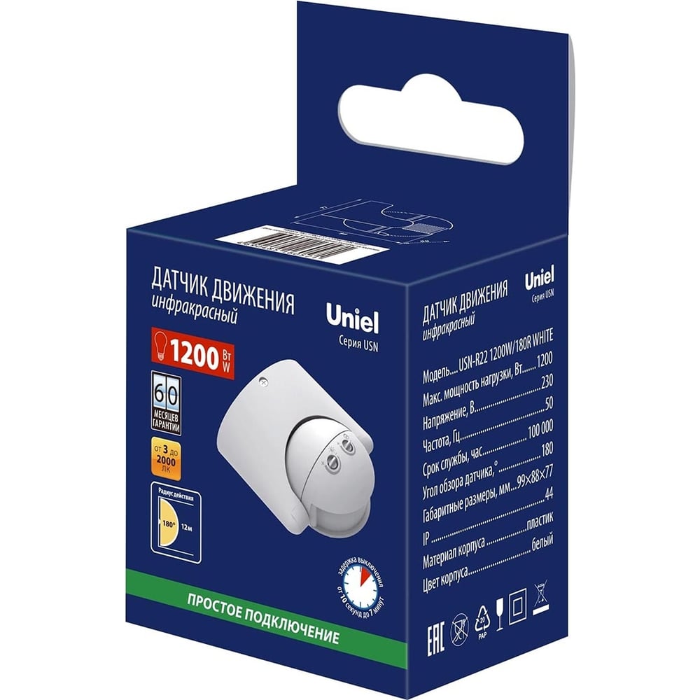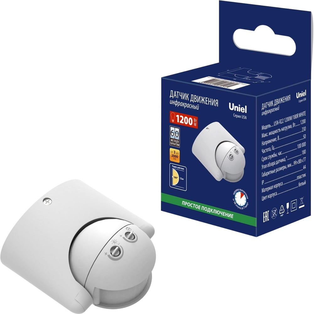Датчик движения Uniel USN-R22 1200W/180R WHITE UL-00009212