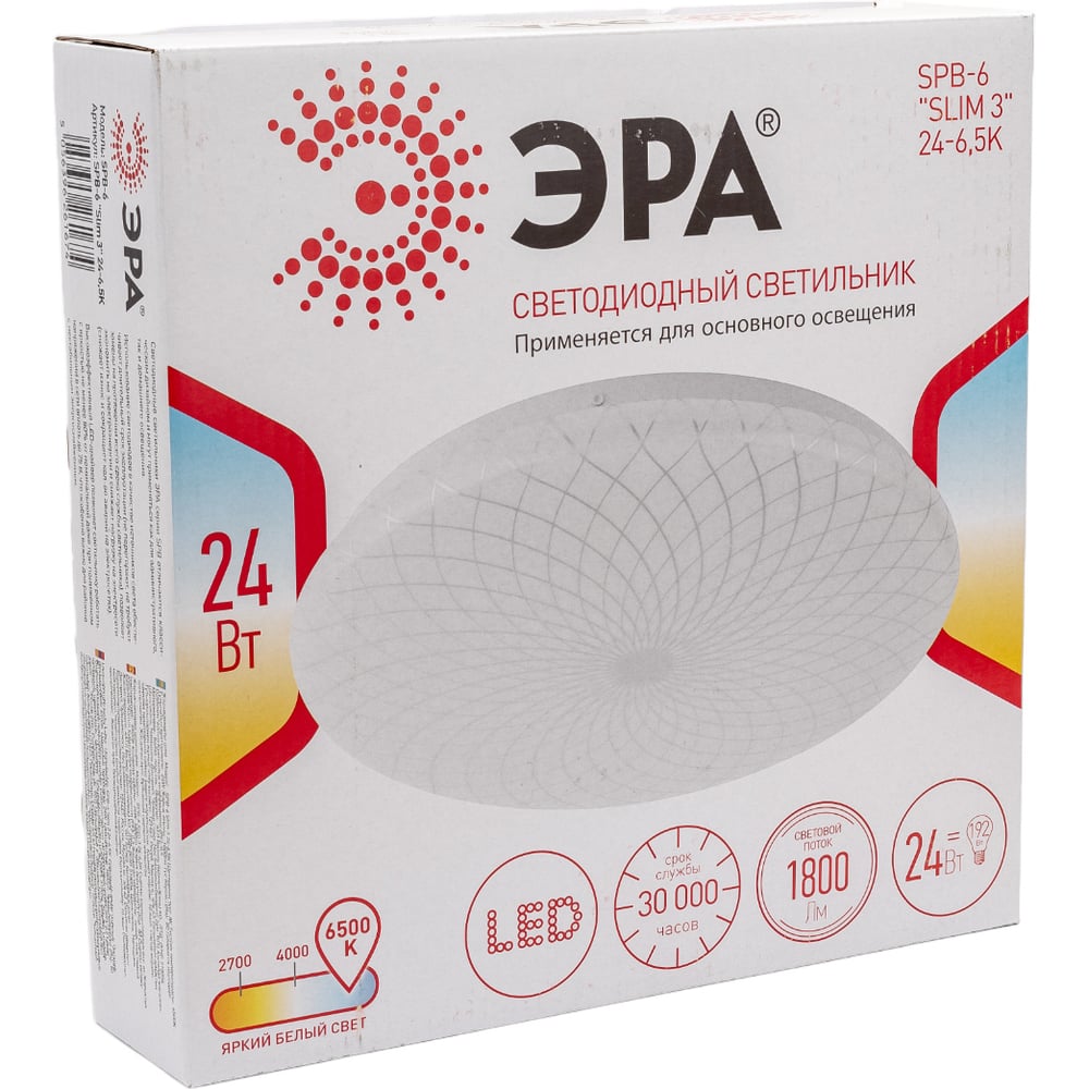Потолочный светодиодный светильник ЭРА Slim без ДУ SPB6 Slim 3 246K 24Вт 6500K Б0050384