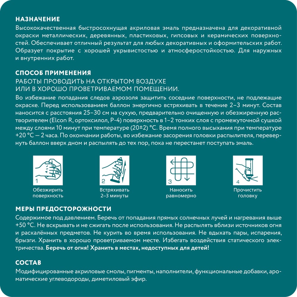 Аэрозольная краска Elcon в баллончике для мебели, для декора, для металла, для пластика, для керамики, для стекла, для гипса, быстросохнущая, акриловая, лазурная гладь, аэрозоль 520 мл 00-00462258