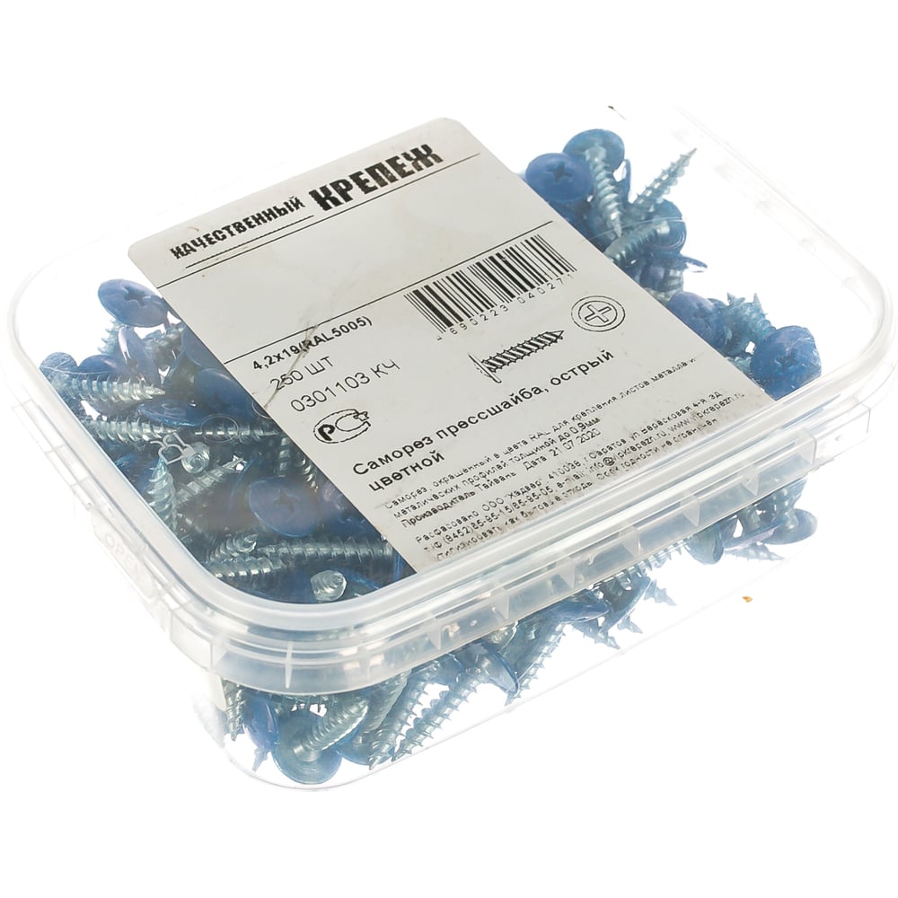 Острый саморез с прессшайбой качественный крепеж 4,2/19 RAL5005 синяя (250 шт.) 0301103