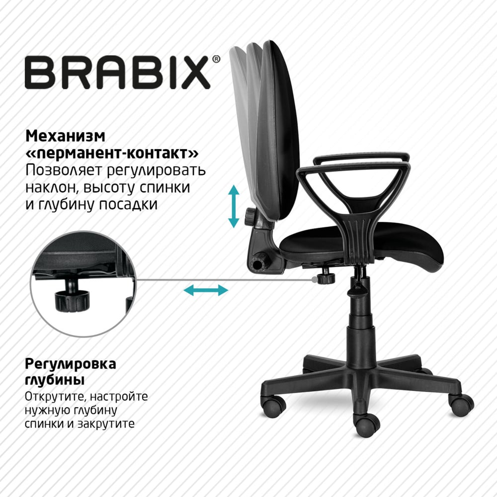 Стиль современный Регулировка высоты сиденья да Требует сборки да Подлокотники да Подъемный механизм да Механизм качания нет Регулировка высоты спинки нет Регулировка высоты подлокотников нет Механизм вращения да Подголовник нет Регулировка наклона спинки да Подставка для ног нет Max нагрузка 90 кг Ширина сиденья 470 мм Глубина сиденья 450 мм Ширина спинки 430 мм Высота спинки 570 мм Min высота сиденья 390 мм Мах высота сиденья 520 мм Цвет спинки черный Материал крестовины пластик Материал подлокотников пластик Цвет сиденья черный Материал обивки искусственная кожа Колеса есть Ортопедическое нет
