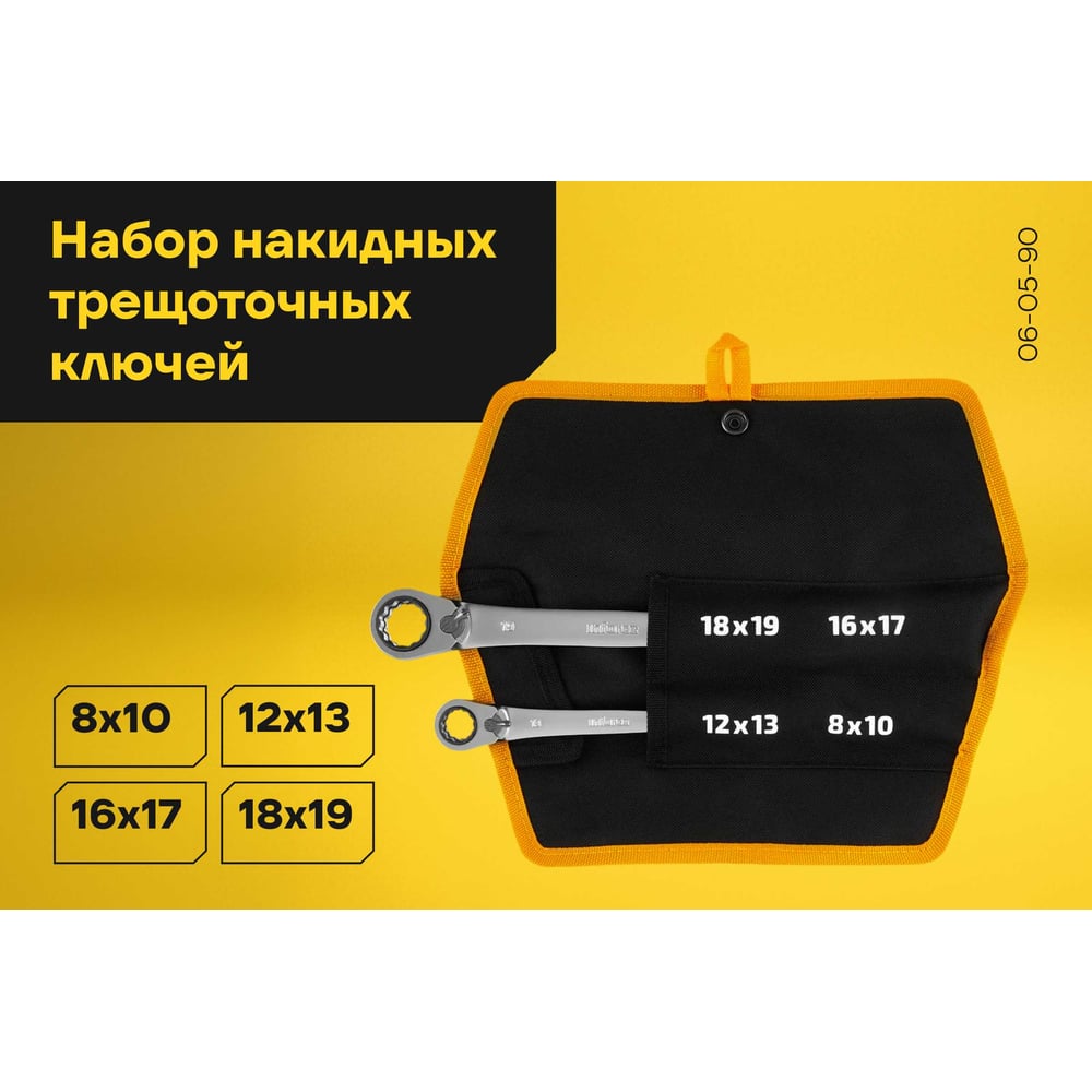 Набор накидных трещоточных ключей 4 в 1 Inforce, Сталь Cr-V, 8-19мм, профессиональный, 06-05-90