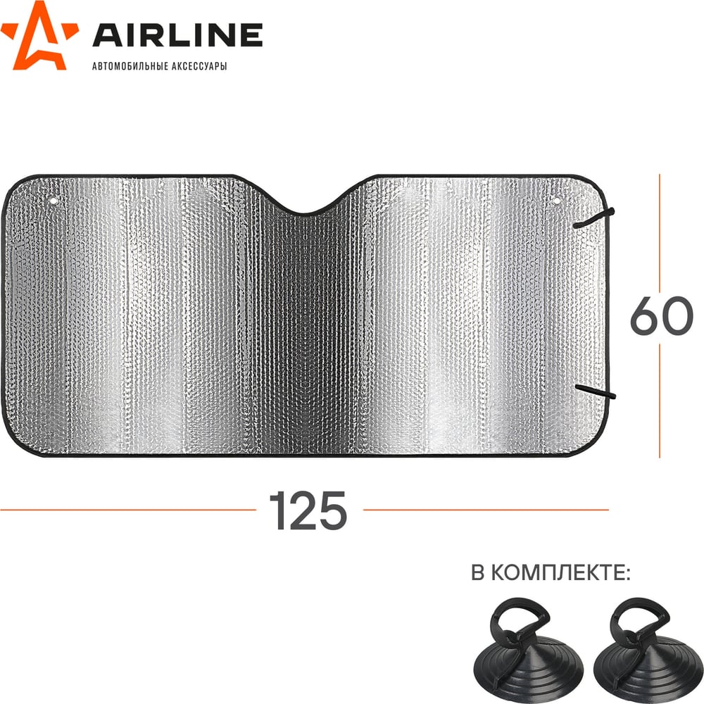 Солнцезащитная шторка Airline 60 см на лобовое стекло 140г/м2, серая, 60x125 см ASPS-60-01