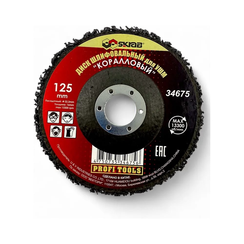 | Тип диска | шлифовальный |