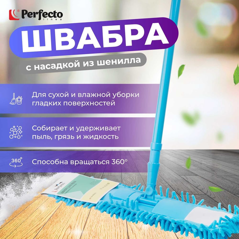Швабра для пола PERFECTO LINEA Solid с насадкой из шенилла, голубая 43-492032