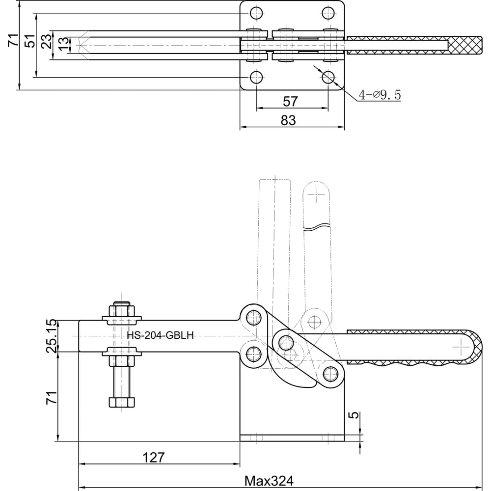 Зажим с горизонтальной рукоятью HS CLAMP HS-204-GBL