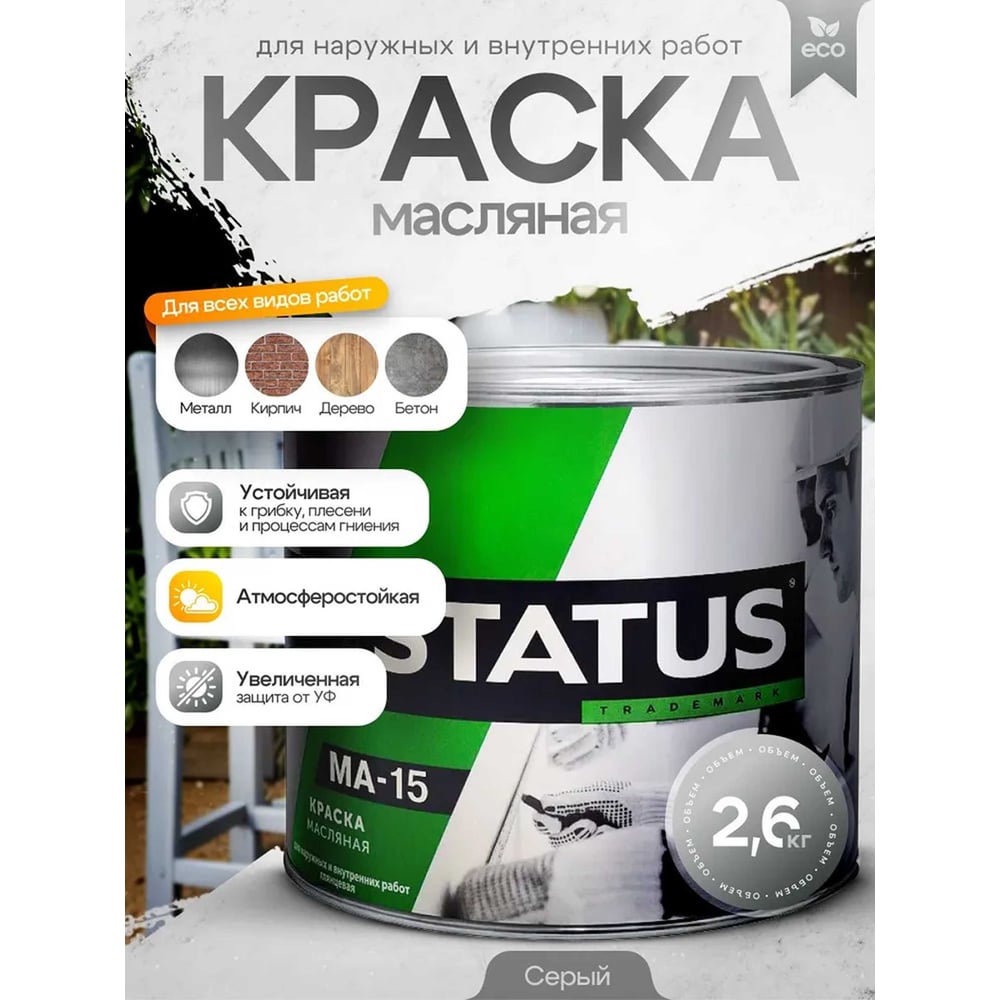 Масляная краска Радугамалер STATUS МА-15 (серая; по металлу, дереву, бетону; 2.6 кг) 4630018083410