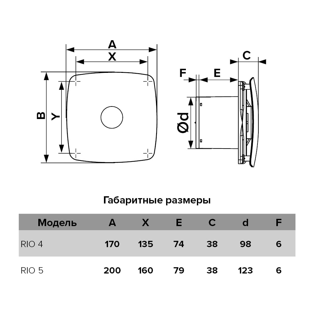Габариты без упаковки 200х200х123 мм Высота 200 мм Ширина 200 мм Цвет темно-серый металлик Тип установки настенный Вес нетто 0.7 кг Серия Rio Напряжение 220 В Мощность (Вт) 16 Производительность 180 м³/ч Диаметр воздуховодов 125 мм Уровень шума 33 дБ Установочная высота 160 мм Наличие датчика влажности нет Наличие таймера нет Москитная сетка нет Обратный клапан есть Вид канала круглый Установочная длина 160 мм Монтажная глубина 89 мм Наличие датчика движения нет