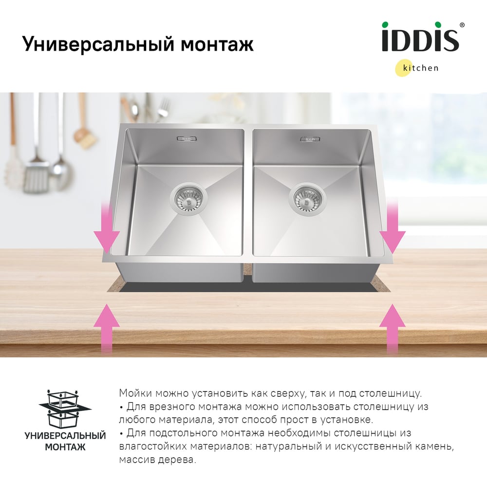 IDDIS Мойка нерж.сталь универсального монтажа сатин 745440 Edifice EDI75S2i77