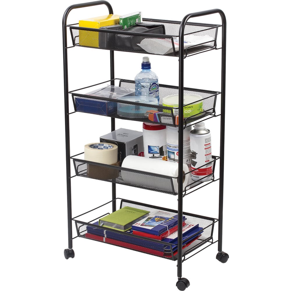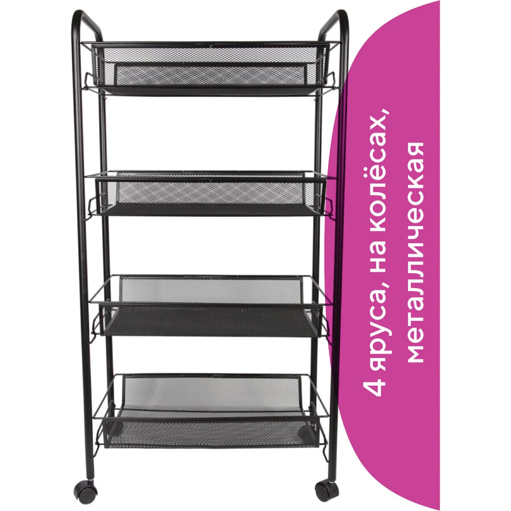 Офисно-бытовая этажерка-тележка 4 яруса, на колесах, металл, черная, 43,5х26х83,5 см BRABIX 603753
