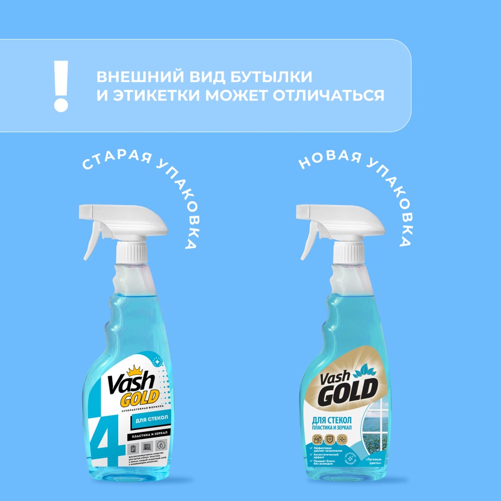 Средство для мытья стекол, пластика и зеркал VASH GOLD 500 мл, спрей 307345