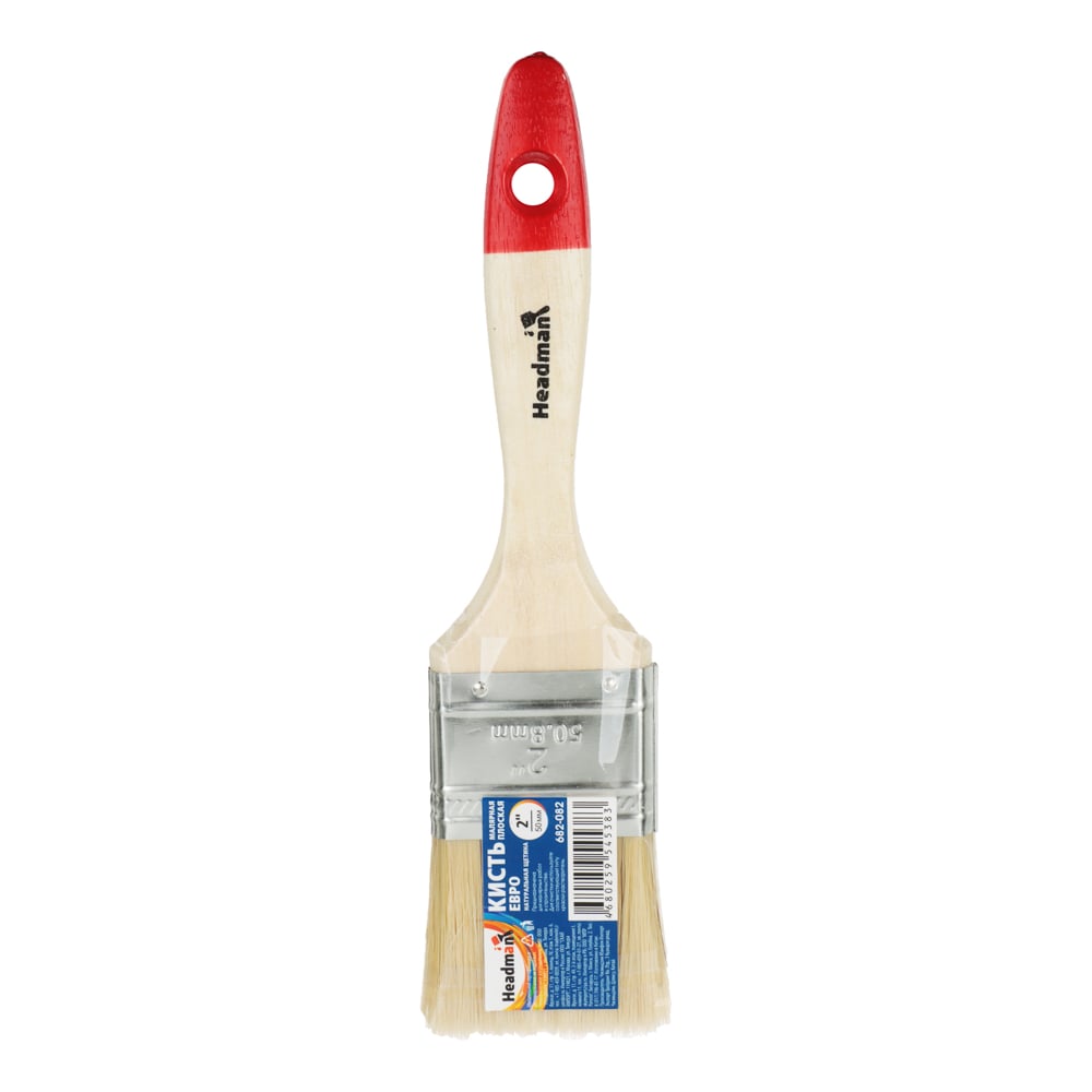 Кисть HEADMAN малярная плоская "Евро" натуральная щетина 2 д. 50 мм 682-082