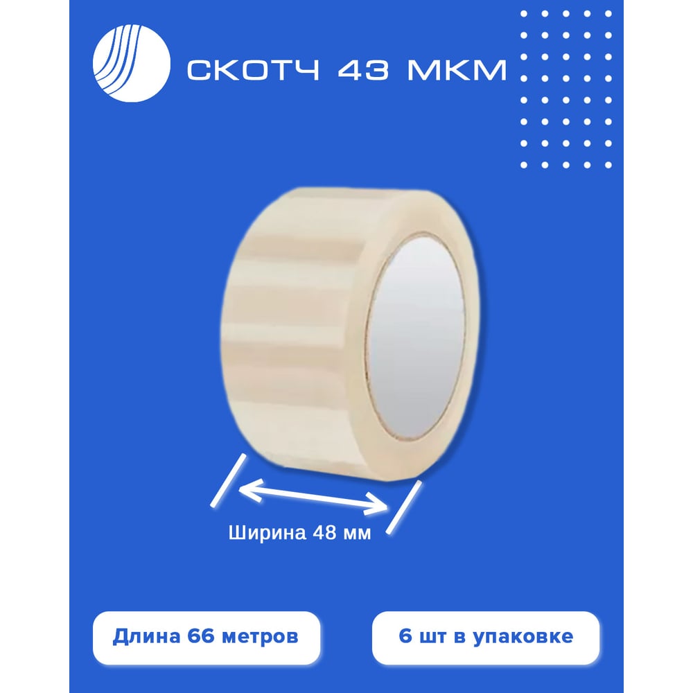 Скотч ВОЛГА ПОЛИМЕР 48 мм, 66 м, 45 мкм, 6 шт. 509000112