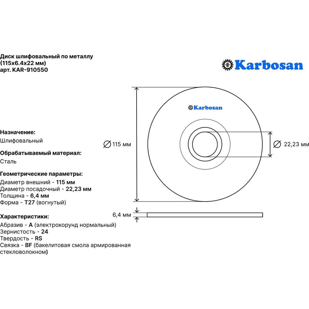 | Тип | диск шлифовальный |