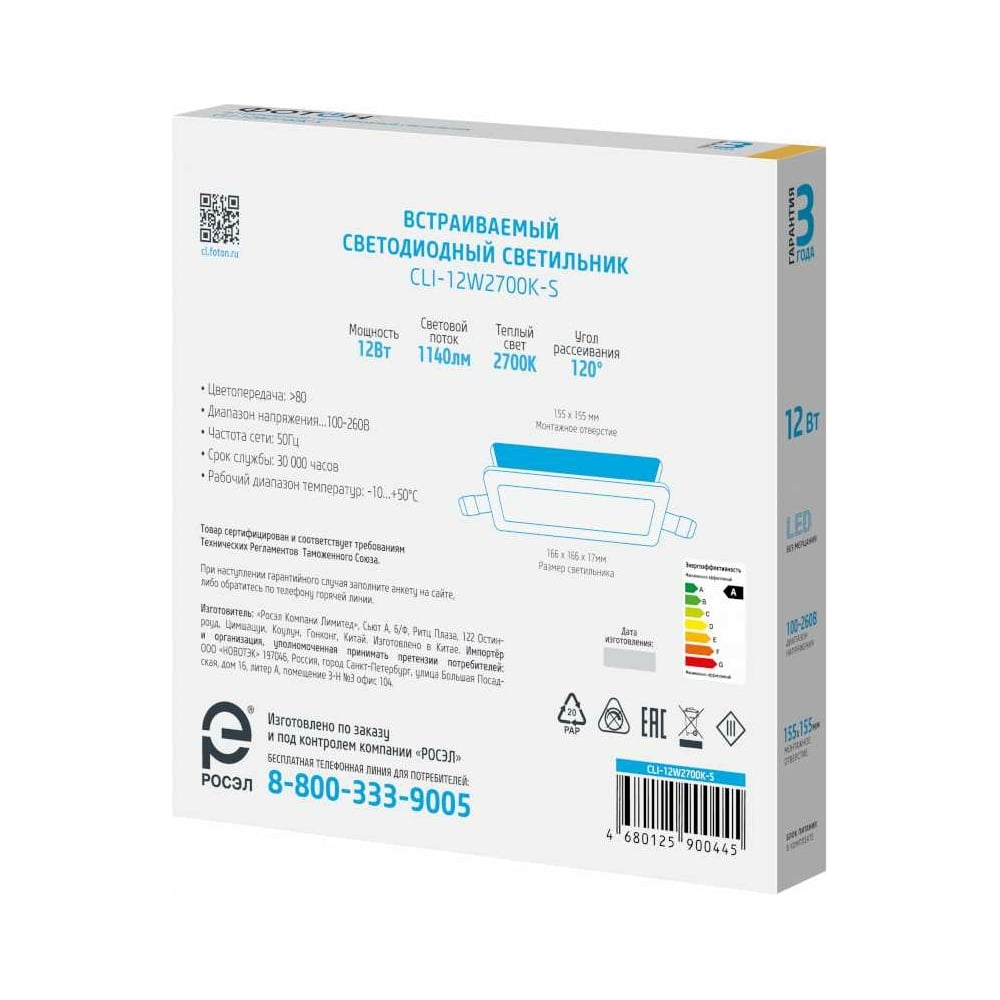 | Мощность светильника | 12 Вт |
